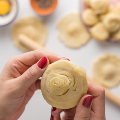 Barcha masalliqlarni olib 3-5 millimetr qalinlikda somoncha shaklida to'g'rab olamiz.