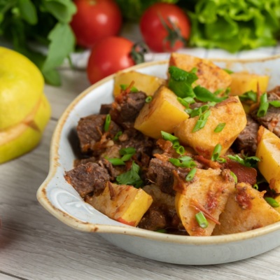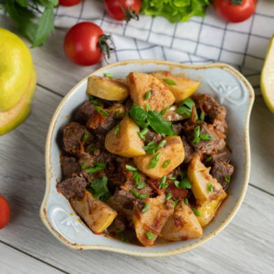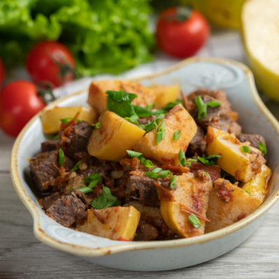 Xushbo’y behi va go’shtning uyg’unligi taomga biroz noodatiy, ammo juda mazali ta’m bag’ishlaydi. Tayyorlab ko’rishni tavsiya qilamiz.