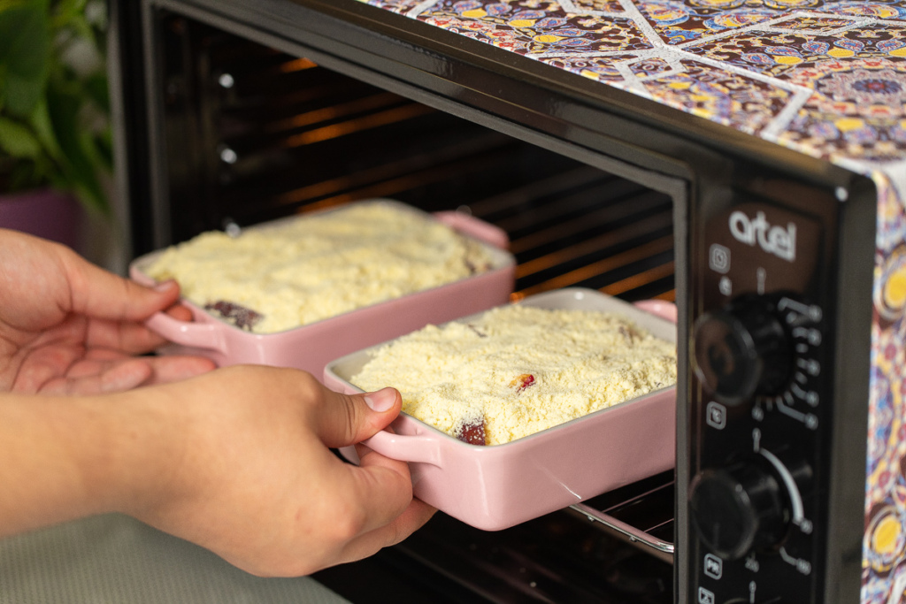 Kramblning mashhurligi uning oddiyligi va tez tayyorlanishi tufayli desak mubolag’a bo’lmaydi. Barchasi chindan ham juda oson: mevalarni joylashtirib, ustidan qumoq xamir sepamiz holos.