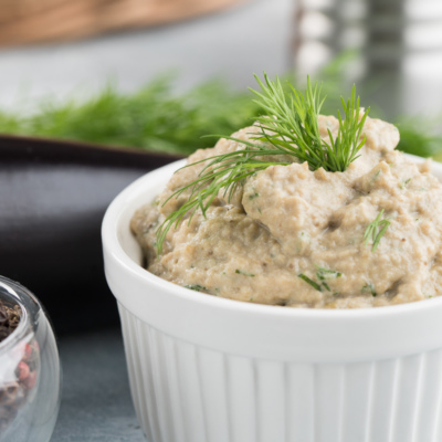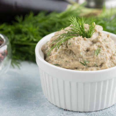 Pishirilgan baqlajonlardan qayla-pashtet
