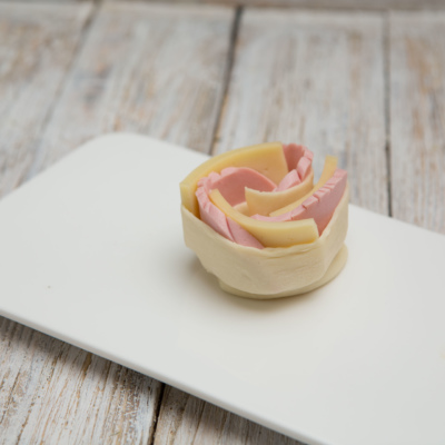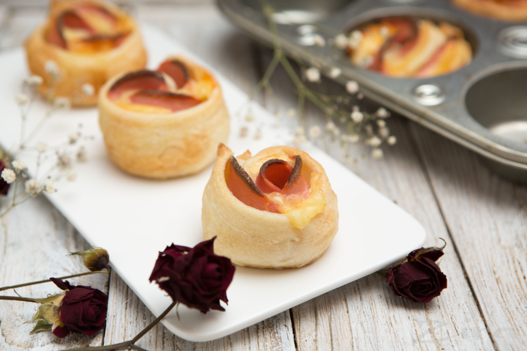 Kolbasa va pishloq solib pishirilgan «atirgullar» — ajoyib yegulik vazifasini o’taydi. Tez tayyorlanilib, dasturxondan bir necha daqiqada tugab qoladi.