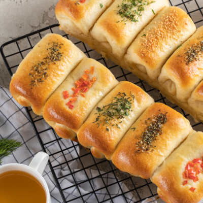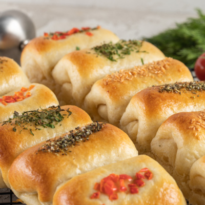 Bulochkalar ustiga tuxum sarig'i va sutli aralashmani surtib, kunjut, qizil paprika, sedana va istalgan boshqa ziravor sepamiz.