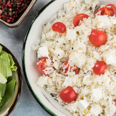Pomidor va feta pishlog’i bilan pishirilgan guruch