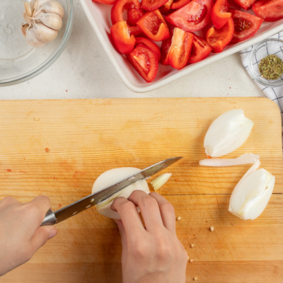 Sarimsoq piyozni ustki qatlamini biroz tozalaymiz.