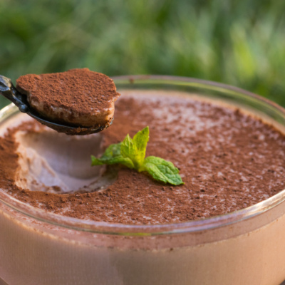 Tayyor desertni kakao va yalpiz yaproqchalari bilan bezatib, dasturxonga tortish mumkin.