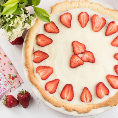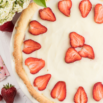 Qaynatma krem solib pishirilgan qulupnayli tart