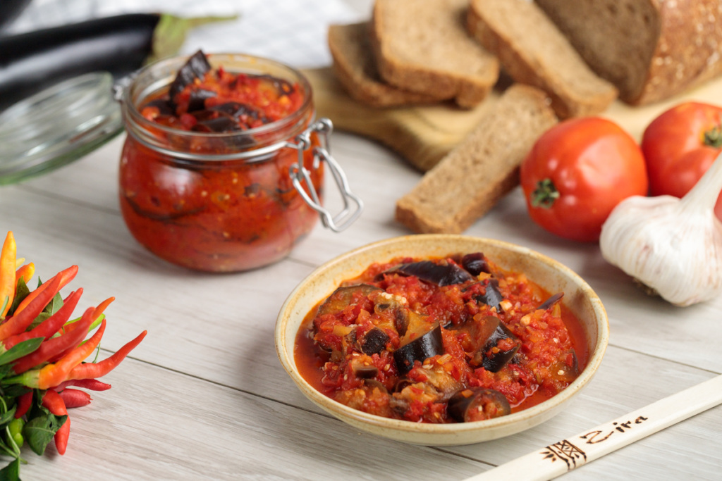 Qishga salat: pomidorli qaylada pishirilgan baqlajonlar