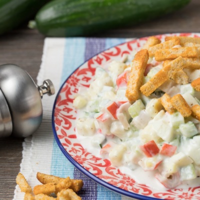Agarda siz ham qisqichbaqa tayoqchalari qo’shilgan salatlarni xush ko’rsangiz, unda bugungi yangicha salatimiz aynan siz uchun!