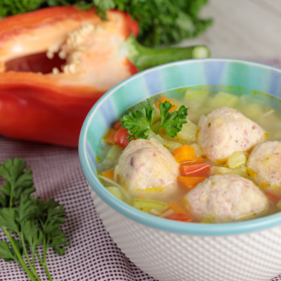Qovoqcha va frikadelkalar bilan pishirilgan yozgi sho’rva