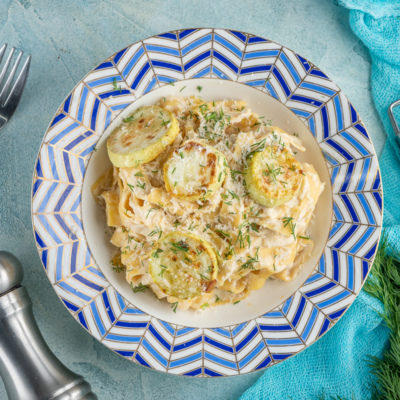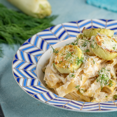 Qovoqchadan sous va fetaksa pishlog’i qo’shilgan pasta