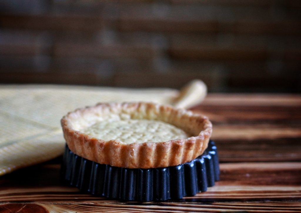 So'ng xamirlarni olib, kerakli bo'lakchalarga bo'lamiz. Tartaletkalar qolipchalariga xamirlarni yoyib qo'yamiz. Agar sizda tartaletkalar uchun qolipchalar bo'lmasa, unda uni bitta katta qolipda qiling. Xamirning bir necha joyiga sanchiq bilan teshib chiqamiz, bunda xamir ko'tarilib, xunuk holatga kirmaydi. Xamir yoyilgan qolipni 30 daqiqaga sovutgichga olib qo'yamiz. So'ng qoliplarning ichiga yuk (guruch, mosh yoki loviya) solib, 20 daqiqa 200 C da, so'ng yuksiz 10 daqiqa 160 C da pishirib olamiz.