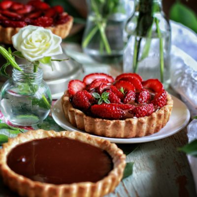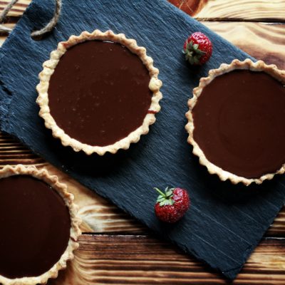Qulupnay va shokoladli ganashdan tayyorlanilgan tartaletkalar