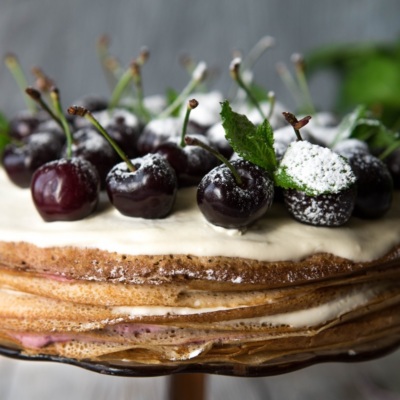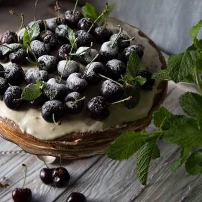 Quymoalarni bitta-bitta likopchaga solib, avval 3 qavatiga oq kremdan, so'ng gilosli krem, keyin yana 3 qavatiga oq kremdan surtib chiqamiz. Shu holatda kremlasrni surtib chiqamiz.