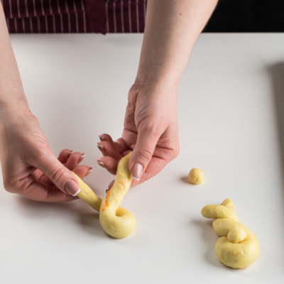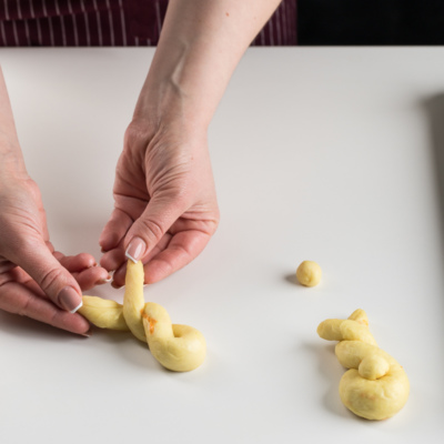 Quyonchalarni pergament qog'oz ustidan terib chiqamiz. Ustini sochiq bilan yopib, 20 daqiqaga qoldiramiz.