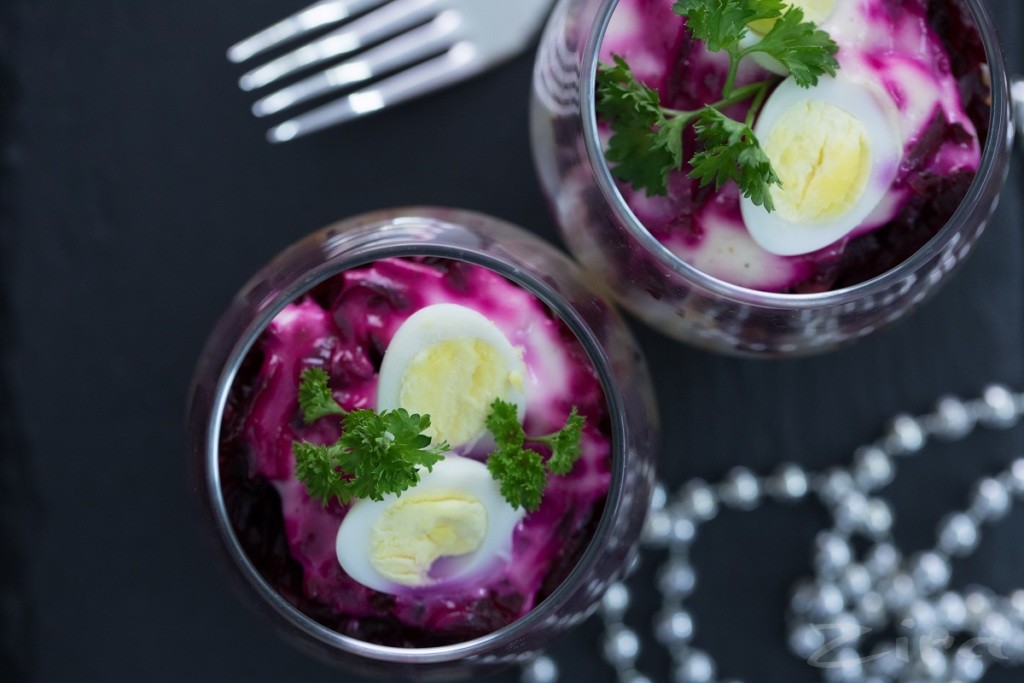 Masalan quyidagi ko'rinishda: seld bilan piyoz, kartoshka, sabzi, tuxum va qizil lavlagi.