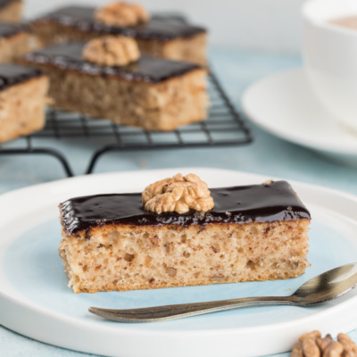 Shokoladli glazur bilan bezatilgan yong’oqli pishiriqlar