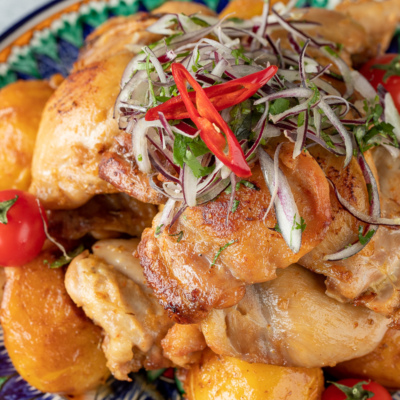 Ushbu taomni bizning retseptimiz bo’yicha albatta tayyorlab ko’ring va  kechki ovqat yoki tushlik uchun  oltin rangli kartoshka va huddi shunday tusga ega sersuv tovuq go’shtiga to’la taom yarating.
