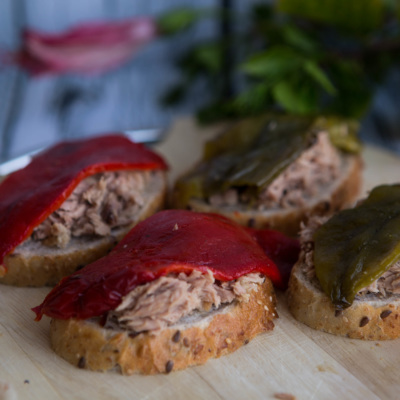 Tunets balig’i va bulg’or qalampiridan tayyorlanilgan bruskettalar