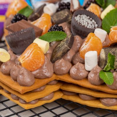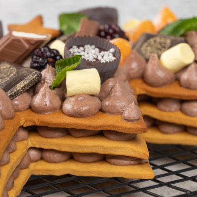 Yangi yil dasturxoniga shunday nafis, chiroyli va eng muhimi mazali, archa shaklidagi tort tayyorlashni tavsiya etamiz. Unda nozik asalli ko’rj qaymoq va shokoladli krem bilan mukammal tarzda uyg’unlashgan.