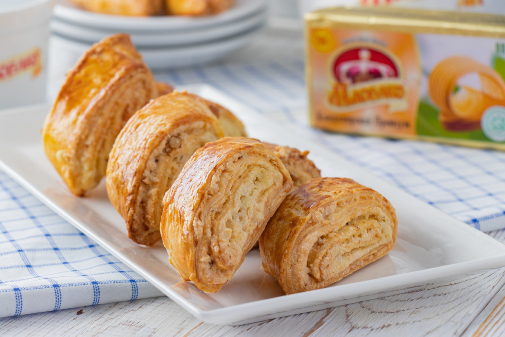 Stol ustiga un sepib, to'rtburchak shaklida to'g'ralgan sovuq margarinni qo'yamiz.