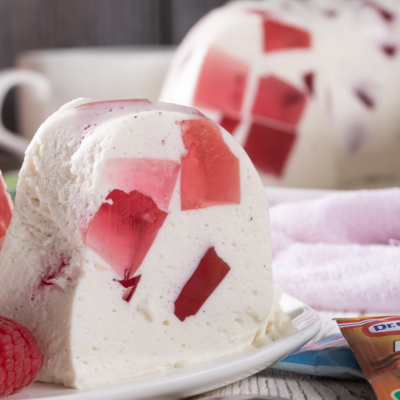 Smetanali kremga jele kubiklarini solamiz. Aralashtirib, silikon qolipga quyamiz.