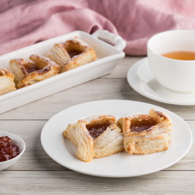 Bizning videoretseptimizga tayanib, qatlamali xamirdan tayyorlang va ichiga jem solib, ajoyib pishiriqlardan pishiring.