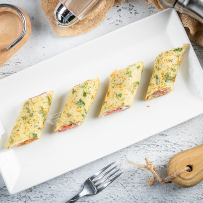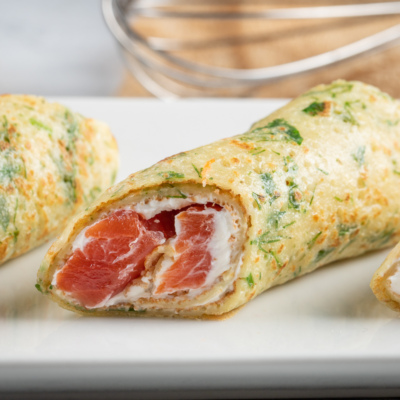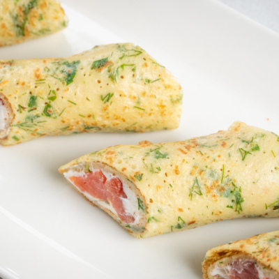 Ko’katli blinchik – bu, xamiriga maydalangan ko’kat qoshilgan, oddiy blinchikning bir turi. Ko’kat qo’shilgani uchun ularning ta’mi va ko’rinishi yorqin bo’ladi. Ularni ham o’zini ham nachinka bilan iste’mol qilish mumkin. Bu retseptda nachinka sifatida tvorogli pishloq va qizil baliqni ishlatdik.