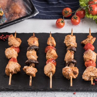 1 o'ram "Kulinar"dan ishlab chiqarilgan kurka go'shtidan kavkazcha kabob