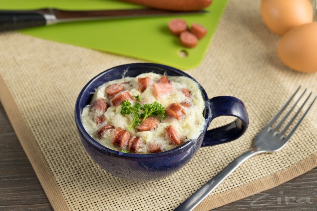 5 daqiqa va mazali nonushta tayyor! Tuxumga har xil asoslar qo’shib, turli xil yangi taomlar pishirish mumkin. Masalan qo’ziqorin, pishloq, ko’katlar va boshqa shu kabi masalliqlar qo’shib. Kelinglar, bugun kolbasa va dudlangan go’sht qo’shilgan quymoq tayyorlab olamiz.