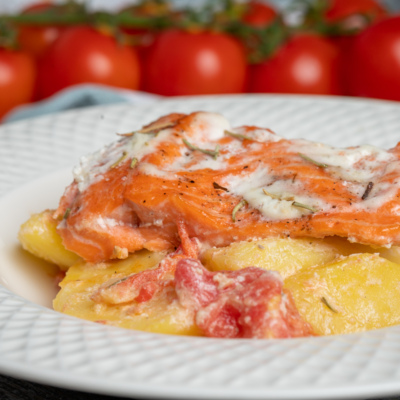 Pechda pishirilgan kartoshkali losos balig’i filesi – bu lazzatli va to’yimli taom. U tez va oson tayyorlanadi, hamda juda foydali. Bunday taomni mehmonlar kelishiga ham tayyorlash mumkin.