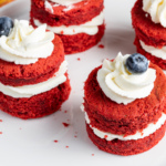Sovutilgan xamirdan 6 sm diametrlik dumaloqlar kesamiz. Har bir xamir ustiga krem chiqarib, ustini ikkinchi qavat xamir bilan berkitamiz.