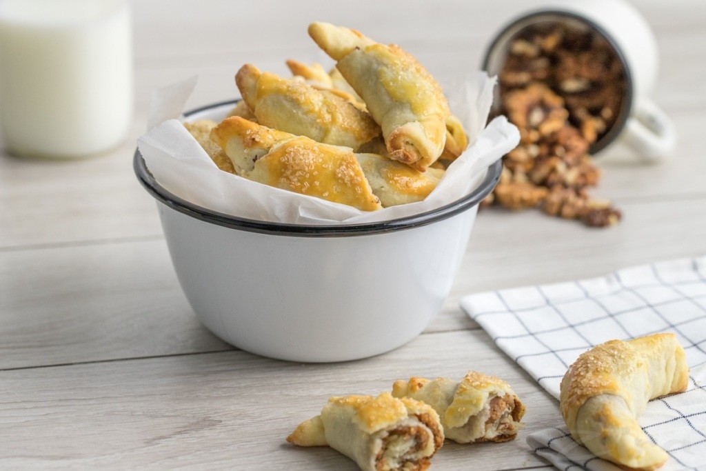 Bunday rogaliklar ertalabgi nonushta uchun ham, kechki choy bilan yeyishga ham juda ajoyib tanlovdir.