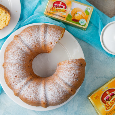 Tayyor keksni ozroq sovutib, qolipdan olamiz. Ustiga shakar upasini sepamiz.