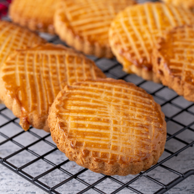 Korjlarni gaz pechi patnisiga joylashtirib, ustiga tuxum surtamiz va sanchqi yordamida "chiziqlar" qoldiramiz.