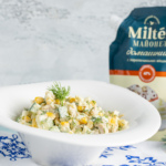 Salat uchun idishda barcha masalliqlarni makkajo’xori va tuz bilan birlashtiramiz.