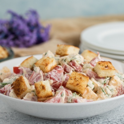 Pechda tillarangga kirgunicha pishiriladigan kartoshka va tunets balig’idan tayyorlangan mana bunday yegulik dasturxoningizga ko’rk berishi aniq.