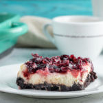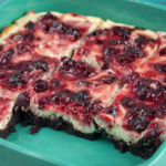 Bu desert xushbo’y shokoladli xamir, mayin tvorogli qatlam va nordonlik qo’shadigan olchali murabbodan iborat. Brauni tayyorlash usuli bu yerda klassik emas – tarkibida shokolad yo’q, ammo bu pishiriqqa xos ta’m va ko’rinish saqlanadi.