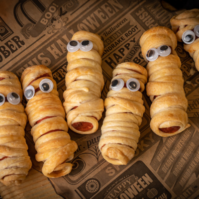 Xamir ichida sosiskalar «Mumiya» — Hellovin bayrami “daxshatli” dasturxoni uchun ajoyib gazak. Bunday ajoyib pishiriq pishirib farzandlaringizni hursand qiling.