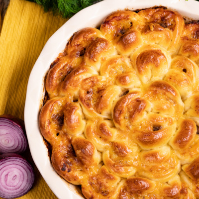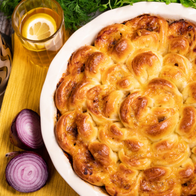 Yumshoq va mazali, oshirma xamirdan tayyorlanib, ichiga qiyma va pishloq uyg’unlashtirilgan bu pirog ishtahani ochib, kayfiyatni ko’tarishi aniq.