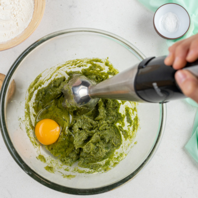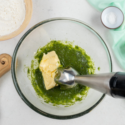 Yumshoq sariyog’ va tuxum qo’shib, blenderda barchasini aralashtiramiz.