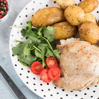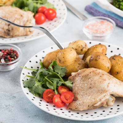Yangi chiqqan kartoshkalar bilan pishirilgan tovuq