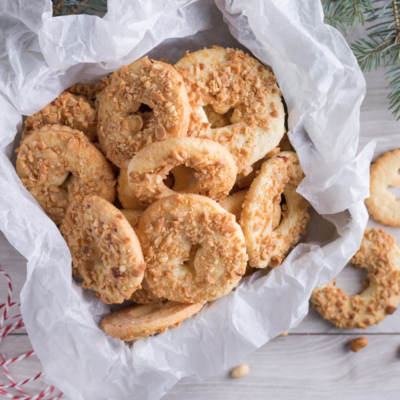 Oddiy va tez tayyorlaniladigan yeryong’oqli pechenyelardan tayyorlab ko’ring. Bu pechenyelar issiqligida ham, soviganidan so’ng ham bir xil mazali bo’lib, ularni shisha bankalarga solib, bir haftagacha yaxshi saqlashingiz mumkin.
